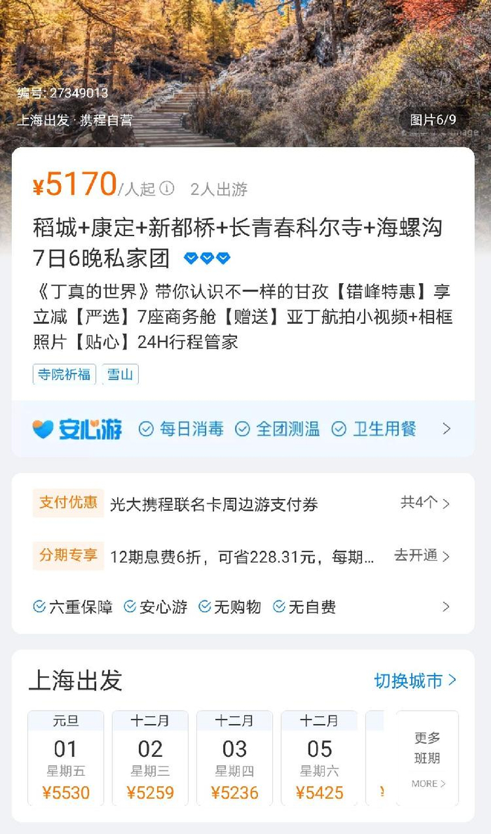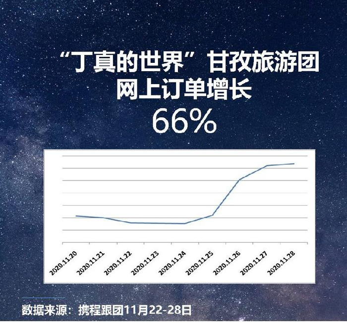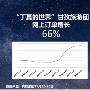 记者在携程旅游平台看到, 以甘孜为关键词,有近2000条产品可以选择。以“丁真的世界”为主题,包括格聂神山、稻城、康定、长青春科尔寺等甘孜线路火了。截止11月30日的一周内,甘孜跟团游产品预订报名人数增长了66%。
