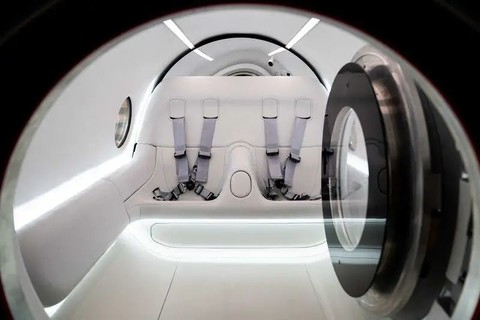 这次测试的胶囊舱是丹麦建筑师 Bjarke Ingels 参与设计的 Pegasus Pod,可以搭载两名乘客,配备了赛车常用的五点式安全带,Virgin Hyperloop 希望最终的胶囊舱能容纳 23 名乘客。