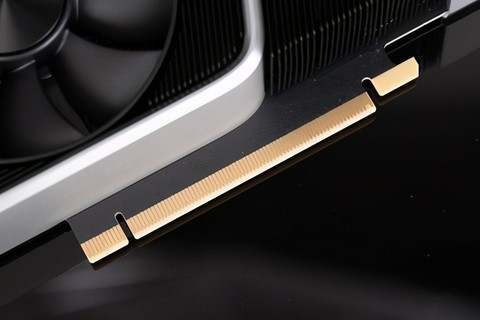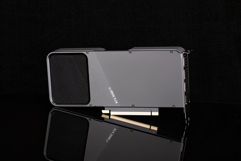 英伟达RTX 3060 Ti公版卡的造型与此前的RTX 3070公版几乎一模一样,正面是两个直径85mm的风扇,具有待机停转功能,散热鳍片是外露的设计,仍然采用了贯穿式的散热设计,背板尾部是镂空的,所以尾部的风扇可以直接穿过整块显卡,形成的风道也有利于整个机箱的散热。