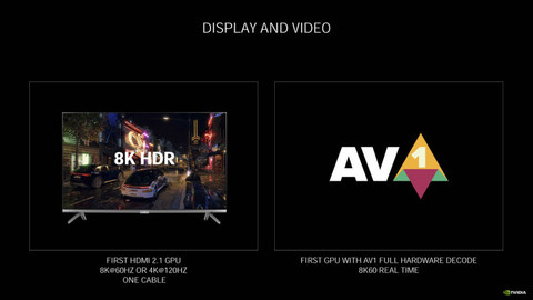 再之后就是HDMI 2.1这个备受期待的新输出端口了。在HDMI 2.1之下,显卡可以用单线材做到8K60Hz或者4K120Hz的输出。对于想用大尺寸电视打游戏的玩家来说是一个不错的福音。