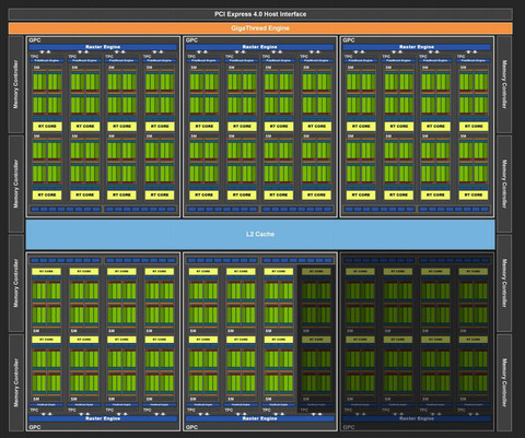 不过与与RTX 3070采用的GA104-300核心相比,GA104-200整整少了一组GPC。GA104核心的一组GPC包含4个TPC,每个TPC又包含2个SM单元,每个SM单元拥有的CUDA核心是128个。