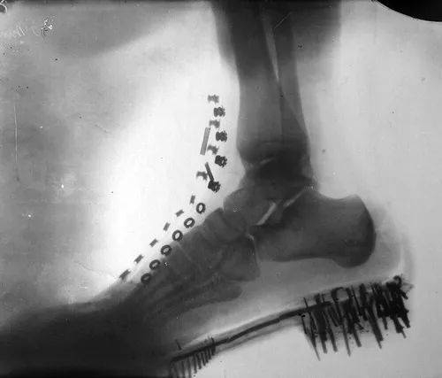 1896年,特斯拉拍摄了这张X光图像:一只脚在鞋中的阴影图