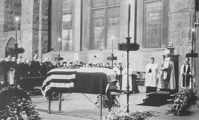 特斯拉的葬礼,棺木上同时覆盖了美国和塞尔维亚国旗