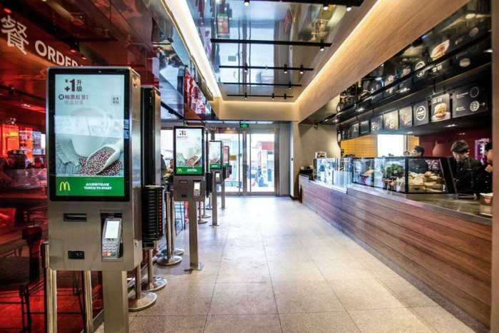 走进麦当劳,你会发现他们在收银台对面设置有自助点餐机。