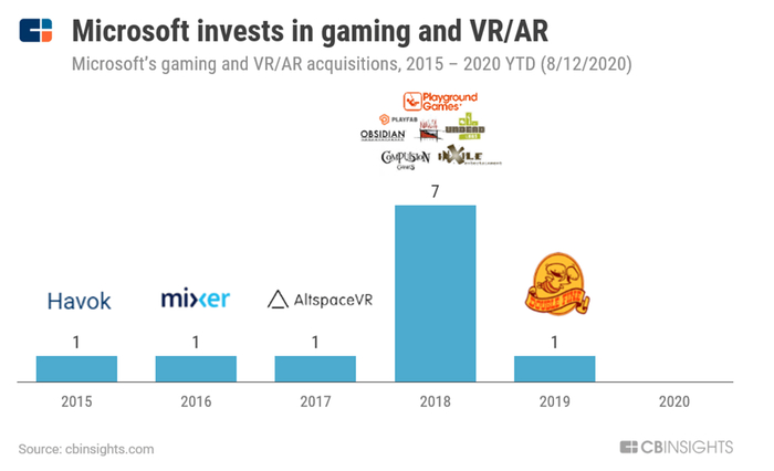 图丨苹果超过 40% 的收购案都是人工智能公司(来源:CB Insights) 像许多其他科技巨头一样,苹果公司也在 VR 和自动驾驶领域寻求新的机遇。 2020 年 4 月,苹果以 1 亿美元的价格收购了 VR 开发商 NextVR 。一直有传言说苹果要进入 AR/VR 领域,因为苹果已经为相关技术申请了数十项专利。如果苹果发布 AR 或 VR 产品,那产品将从 5G 和其在边缘计算的投资中收益。