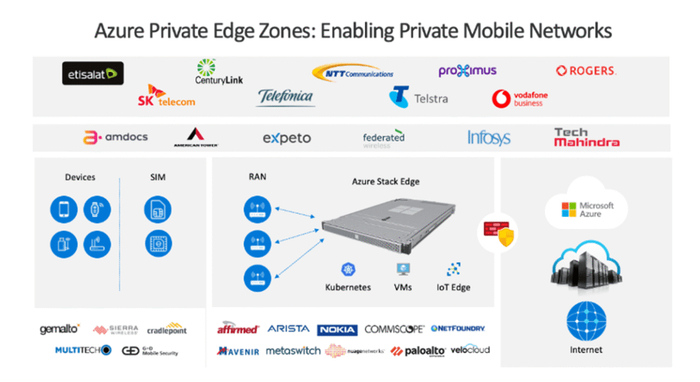 2018 年,微软宣布计划在 4 年内向边缘计算和物联网(IoT)投资 50 亿美元。 从那时起,它就将其公有云功能(在其 Azure 业务下)扩展到边缘,并投资了一些服务型企业,它们能在企业运行大型设备时,满足一些管理和安全需求。另外,微软持续加注可能从边缘计算中受益的 AR 和游戏。 边缘基础架构 2020 年初,微软推出了 Azure Edge Zones,以扩大其在边缘计算领域的影响力。该产品与亚马逊的 Wavelength 相似,通过多种方式使数据处理更接近最终用户。 首先,微软正在城市中建设和运营微数据中心。这些被称为 Azure Edge Zones 的本地数据中心,将支持终端用户运行低延迟和高带宽的应用(如游戏或媒体制作)。 其次,微软已经与电信提供商合作,将 Azure 的功能置于其 5G 基础架构中。微软与 AT&T 在洛杉矶和达拉斯部署了 Azure Edge Zones,目前正在与其他几家电信供应商合作,包括 Vodafone、SK Telecom 和 Telefonica,以扩大服务范围。 此外, Azure Private Edge Zones 带来了 Azure 内部物联网和设备的安全。这项托管服务面向运行专用无线网络的公司,可以支持需要高可靠性和低延迟的应用,如手术机器人。