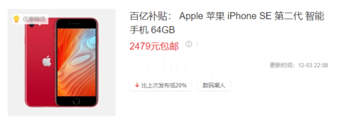 其实目前最具性价比的不是iPhone 12系列,而是iPhone SE 2020(后面简称iPhone SE2)。iPhone 12系列出来之后,iPhone SE2就慢慢被大家遗忘,最终无人问津。导致iPhone SE2发布仅半年多的时间,如今在第三方平台上64GB版本的价格已经跌至2479元,成为目前售价最便宜的苹果手机。