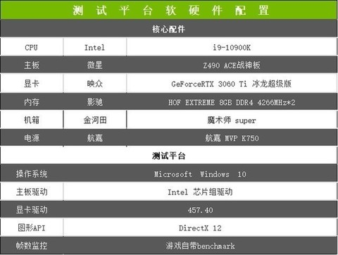 首先介绍一下测试平台,为了保证此次评测能够发挥映众GeForce RTX 3060 Ti冰龙超级版显卡的最佳性能,主板和CPU采用了目前桌面旗舰级配置,具体如下。