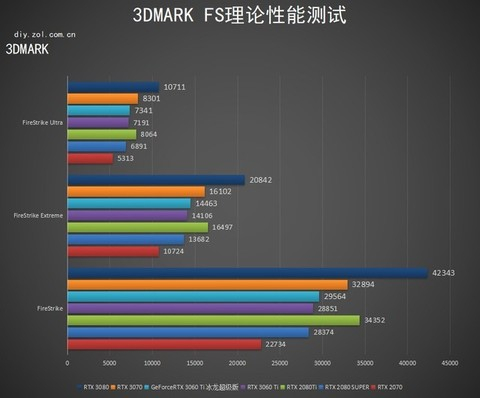 下面先进行的是用来衡量显卡DX11理论性能的3DMARKFS套装:FS,FSE,FSU三者分别对应显卡在1080P、2K、4K的理论性能,取显卡分数实际测试结果如下:
