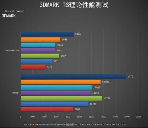 而在针对DX12环境下的Time Spy和Time Spy Extreme测试中,映众GeForce RTX 3060 Ti冰龙超级版领先RTX 2080 SUPER更多,在TSE成绩中领先11%。