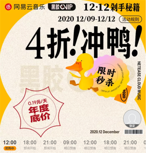 双12之际,网易云音乐黑胶VIP迎来了年度低价,原价158元的年卡限时仅69元,相当于原价的4折,平均到每天仅0.19元,错过只能等明年了。