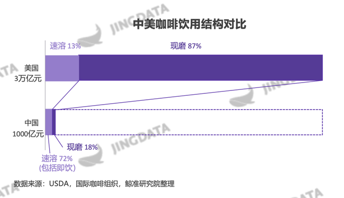 站在咖啡鄙视链顶端的现磨咖啡当然香,但直到2018年,它在中国的市场份额只有18%,而速溶咖啡占了72%。
