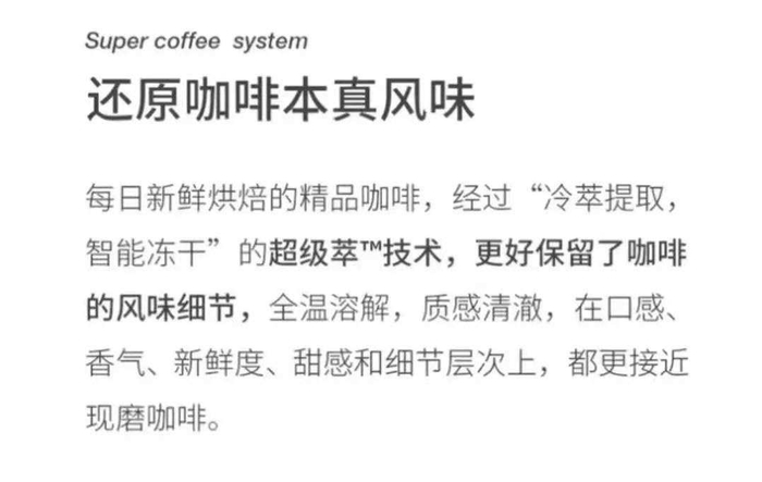 三顿半很聪明,没有把“好喝”当成自己的卖点,只说让我们随时随地喝到一杯“接近现磨口感的咖啡”。含糊不清的形容,成功转移了我们的视线。