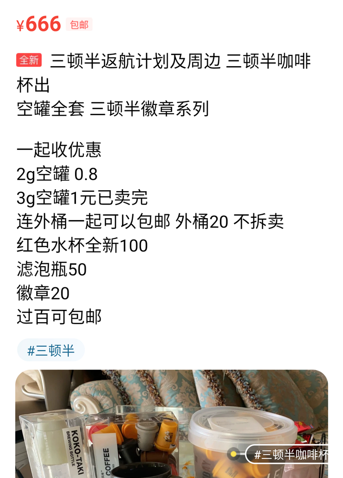 三顿半的咖啡值不值钱,我不知道,但这个小罐子在闲鱼上的市价已经高达1块钱。