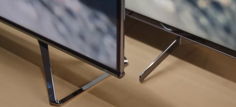 海信U7F金属支架为电镀银蝶翼式设计,索尼为简约金属支架。