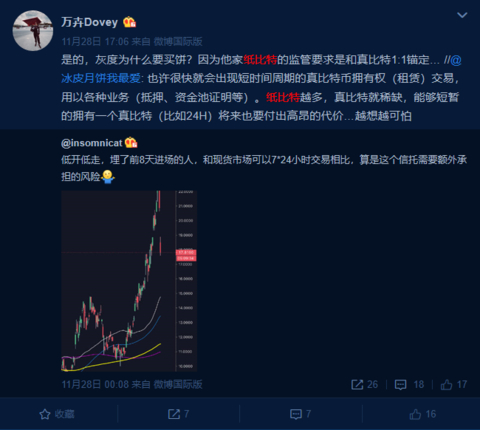 区块链和传统金融世界间存在着壁垒,但是无论是资产、信息,还是权益都有流动性,不同的市场间总有动力寻找连接彼此的出口。 区块链世界在铸造“纸美股”,传统金融世界在铸造“纸比特”。FTX在引入股权通证、Mirror在引入美股代币、灰度的比特币和以太坊信托基金做得风生水起....... 区块链市场,乃至整个金融市场的发展越来越呈现出交易概念、交易未来权益,以提前换取现金流,或者套利的趋势,在这个过程中,标的资产被“增发”,价值被“稀释”。 市场的交易和投资行为还是应该回归朴素,交易资产和标的资产间的距离越近越好,泡沫和杠杆要适度。