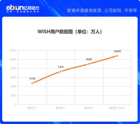 公开资料显示,Wish成立于硅谷,前身是一家技术服务公司,做移动端广告业务。2013年,Wish进入跨境电商领域,专注移动APP运营,出售各种“超低价格”的商品,比如3C电子、服装、家居、汽配、玩具等产品。平台目前的平均月活跃用户数量为1亿,商品数量为1.5亿,商家数为50万,平均每天销售商品数量为180万。