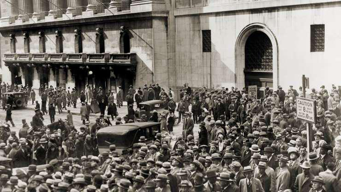 这一切始于1929年10月,美国纽约市场上出现抛售股票浪潮,股票价格大幅度下跌。到10月24日,由举国上下谣言四起造成了金融不稳,人们惊恐万状,被吓坏了的投资者们命令他们的经纪人抛售股票,导致美国股市崩溃。这一天被称为“黑色星期四”。人们很难估计其具体损失,按当时的价格,有1300万份股票易手,有很多几乎白送给人家,总额达数十亿美元。