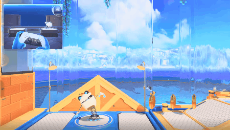 天气同样也可以通过这种反馈体现,在《宇宙机器人无线控制器使用指南》的一个关卡中,天空突然下起了雨,手柄给我的反馈就像是雨点拍打在手柄上......很是神奇。
