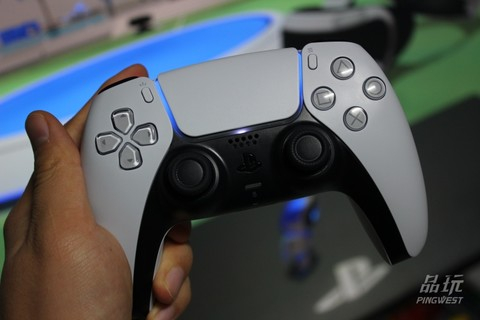 先说下手柄的整体握持感受。整体握持的部分比前代PS4的手柄要饱满一些,两侧贴手的部分加长,而整体的宽度似乎有意在收窄,手柄从顶部到底部采用了一种更弧形的设计,但背部的扳机键似乎也没有显得特别突兀。