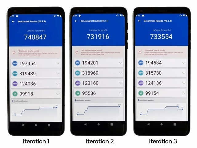 至于骁龙888 5G,它不出意外地夺得了安卓安兔兔跑分桂冠,拿到了了735439分的成绩(三次跑分平均)。