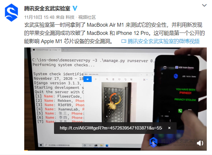 早在11月18日,腾讯安全玄武实验室以1秒钟的夸张速度,瞬间攻破iOS14的防御,取得iPhone 12Pro的最高权限。