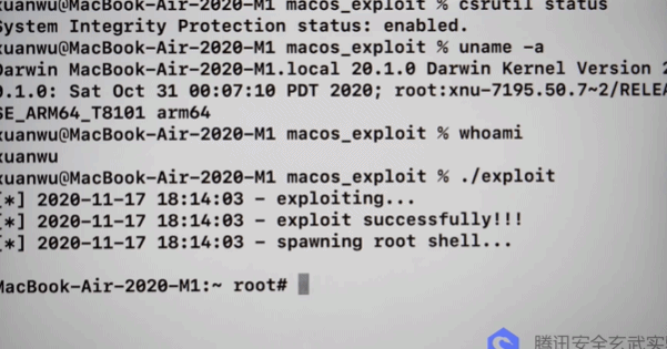 而是通过M1芯片的BUG,仅仅用了几行代码,啪一下,很快地取得Root权限,完全控制手机。