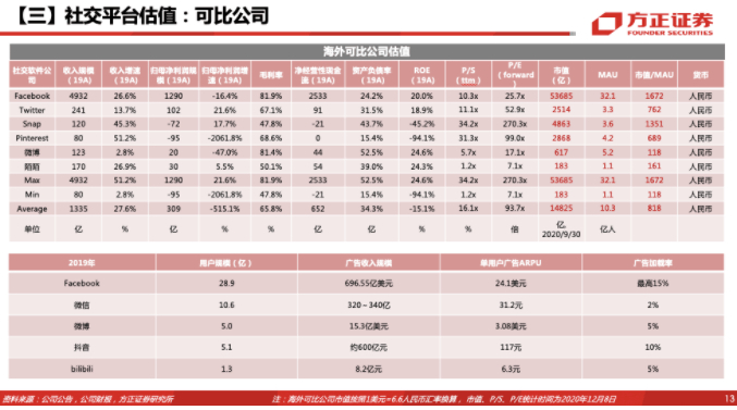 对标Facebook,采用单用户估值法。