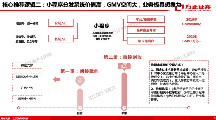 (2)小程序分发系统价值高,GMV空间大,业务具想象力。
