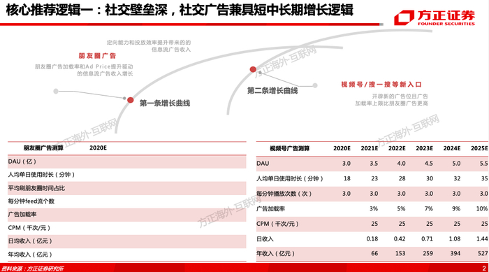 (1)社交壁垒深、微信可替代性低,腾讯社交广告兼具短中长期增长逻辑。