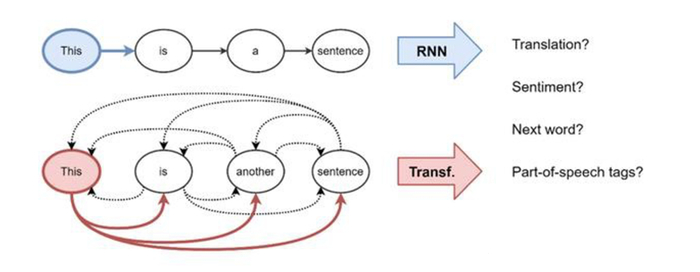 Transformer模型起源于机器翻译领域,抛弃了循环神经网络(RNNs)中循环式网络结构方法,利用注意力机制构建每个词的特征,通过分析词之间的相互影响,得到每个词的特征权重。