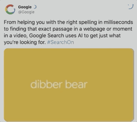 据谷歌统计,在每十次搜索中,就会出现一个拼写错误,如下图用户想搜索dinner,却误输成dibber,但BERT可以绕过这个错误,直接识别出用户意图,提供餐馆位置。