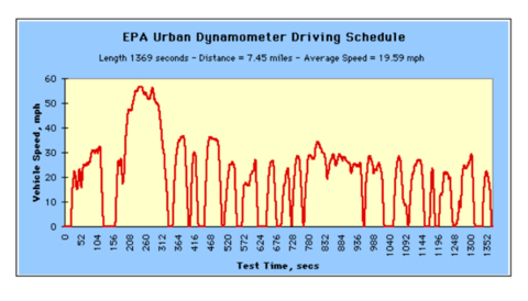 在上述限制所描述的再生制动区域内,可以通过向驱动马达提供适当的转矩和励磁通量指令来获得任何期望的制动转矩和再生动力。随着与电机速度成正比的车速降低,车辆的减速会沿着该区域中的任何位置进行。在低于5 mph的车速下,感应电动机无法产生任何有效的制动扭矩或再生动力,因为它们的转子磁场受到感应电流的限制,而感应电流对于实际应用而言太低了。但是,具有嵌入了永磁体的转子的电动机仍然可以产生足够大的转子磁场,以允许以低于5 mph的速度运行。特斯拉在其Model 3车辆中引入了这种内部永磁(IPM)电机,并计划在Model S和Model X系列的所有新版本中使用它们。图11显示了遵循典型的城市行驶周期时,驱动电动机扭矩图中使用的工作点。行驶周期是EPA的标准城市测力计行驶时间表(UDDS)行驶周期,如图12所示。工作点以红色显示,并且清楚地显示了所用的正加速扭矩和负制动扭矩。在低车速下,制动扭矩随车速的线性变化是显而易见的。
