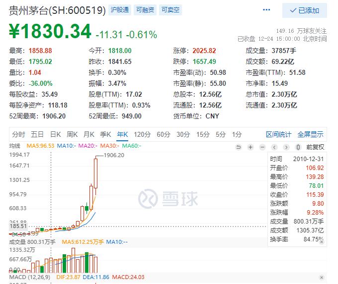 它是中国最贵的酒,还是中国最贵的股票,A股的一哥!