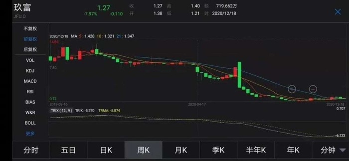 截至2020年12月18日美股收盘,玖富股价不足最高点的1/10