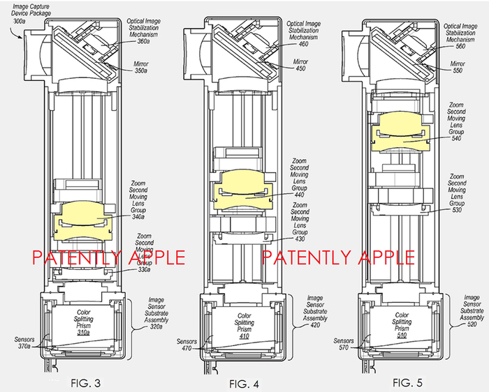 最早的一项与长焦镜头相关专利是在2015年2月申请的,其内容的确是关于一个潜望式镜头模组的设计,并且这个模组中的镜片是可移动的。