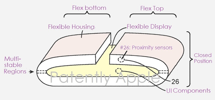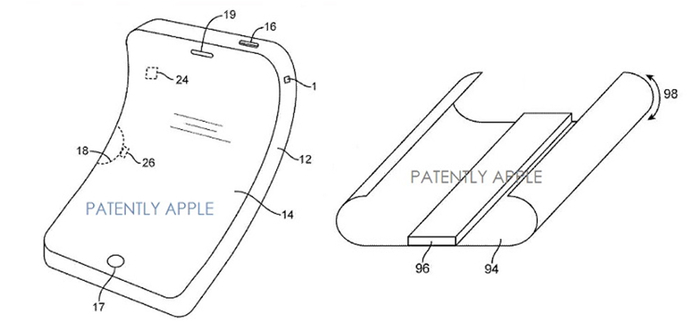 随后,苹果又针对柔性屏幕进行了一系列的专利设计,包括一些屏幕中的柔性组件,甚至是柔性电池。