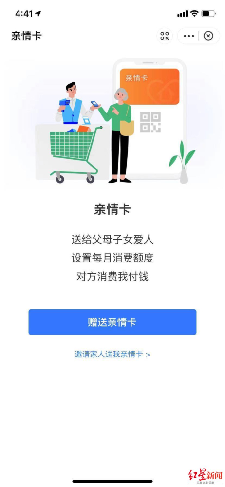 也就是说,卖家小罗如果向女孩发出了额度为2000元的亲情卡,女孩可以在消费时选择由卖家支付,额度2000元以内。