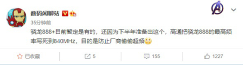 根据某数码博主的爆料称,高通确实又打算推出骁龙888的升级版本。根据高通在骁龙855时代以来的习惯,高通每年在发布一款新的旗舰处理器之后,往往都会再发布一款升级版本的处理器,例如骁龙855plus、骁龙865plus等等。
