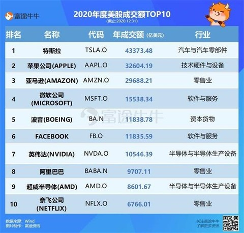 长期霸占股市热搜头条的明星股特斯拉,年成交额高居美股第一位,比苹果多出1万亿。