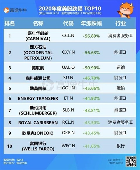 2、2020美股跌幅TOP 10