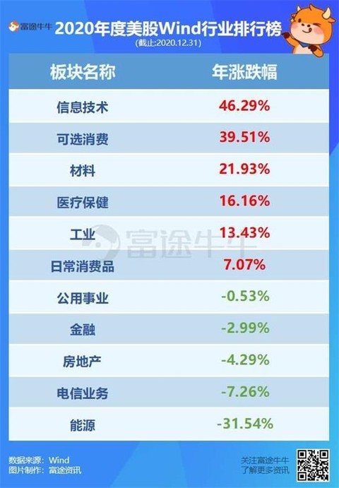 4、2020年美股行业板块涨跌幅榜