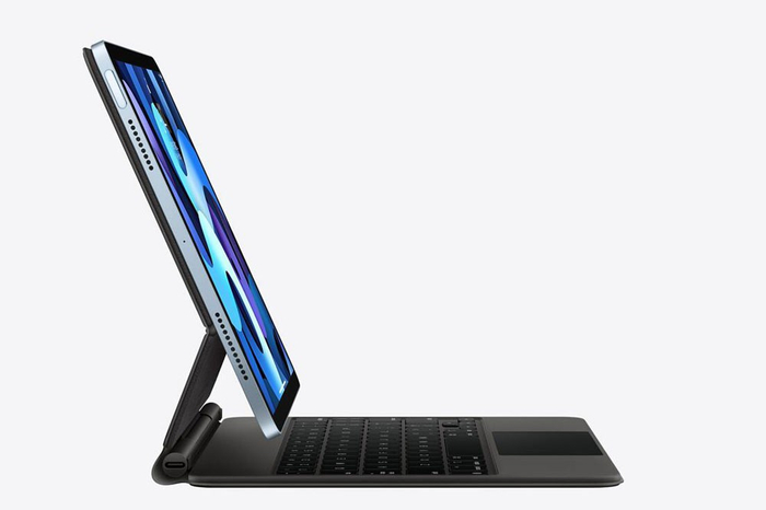 值得一提的是,iPad Air 4还放弃了Lighting接口,改用了Type-C接口;外形方面也不再使用圆润丝滑的造型,而是采用了直棱直角的中框,跟后来的iPhone 12实现了“对齐”。还有一点也得说说,那就是iPad Air 4也支持妙控键盘与Apple Pencil 2,也就是说具备了不错的生产力属性。