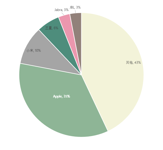 值得一提的是,随着TWS的普及,虽然AirPods仍保持高速增长,但其市占率从19年的50%下降到了2020年Q2的35%。