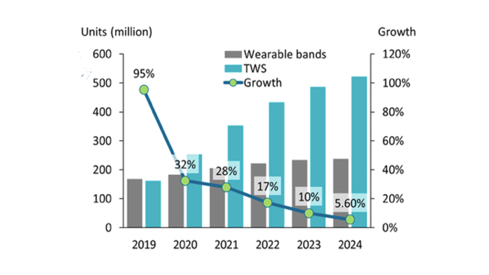 图:2021年TWS预计出货量在3.5亿台