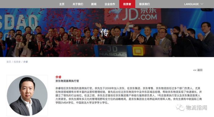 这样的解释,显然无法安抚外界八卦与疑问之心。不过无论如何,在京东集团官网上,京东物流首席执行官已然换成了余睿,而在对其介绍中,赫然写着“尤其在物流领域拥有非常丰富的运营和管理经验……帮助京东物流实现了快速增长,并建立了领先的行业地位”——以这样的措辞传达着余睿能力与功绩。