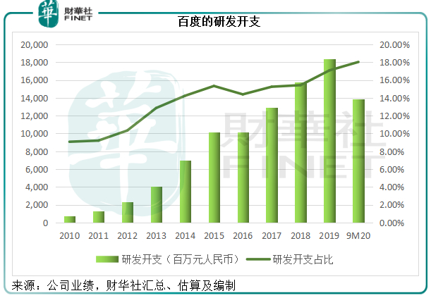 从下图可见,百度的费用化研发开支不断扩大,占收入的比重也持续攀升,更别提资本化的开支了。