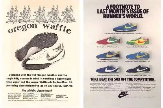1974年,身为创始人之一的鲍尔曼在做早餐时突发奇想,尝试将华夫饼的形状运用到了鞋底中,Nike Oregon Waffle 因此而诞生。这款鞋相比较市面上其他跑鞋更轻盈、柔韧、有设计感,一经推出便迅速点燃了整个市场。在短短不到 5 年时间里,耐克的销售额从 830 万美元一路飙升到了 1.49 亿美元。