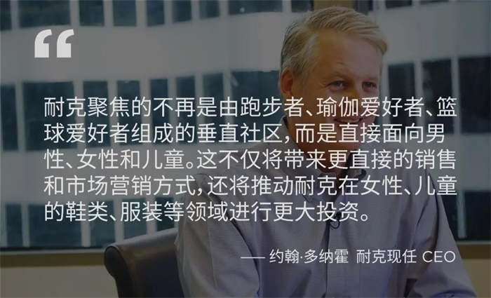 过去耐克的企业愿景是为全球每一位运动员提供最好的体育产品,并将其视为公司最高的荣誉。然而如今,耐克服务的不仅仅是赛场上的运动员,更有每一个热爱运动、渴望运动的普通人。