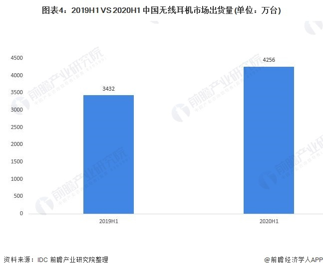 AirPods自2016年横空出世以来迅速赢得消费者的喜爱,无线耳机风靡市场。据IDC数据,无线耳机出货量呈现飞速发展状态。尽管经历了2020年第一季度的低迷,但中国无线耳机市场随后快速复苏。2020年上半年中国无线耳机市场出货量为4256万台,同比增长24%。